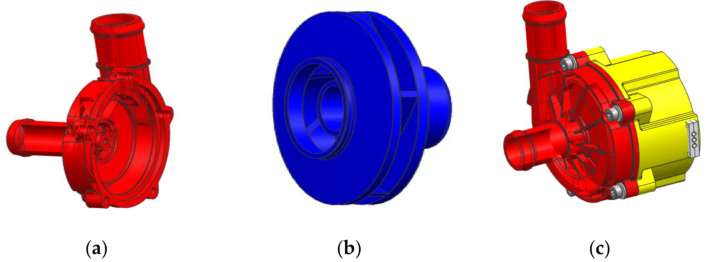Diagrama esquemático de una bomba de agua eléctrica para automóvil (cilindro de bomba, impulsor y base del motor)