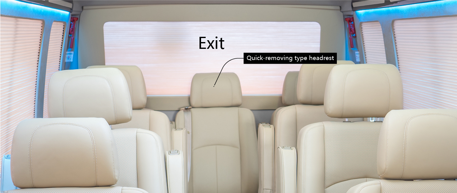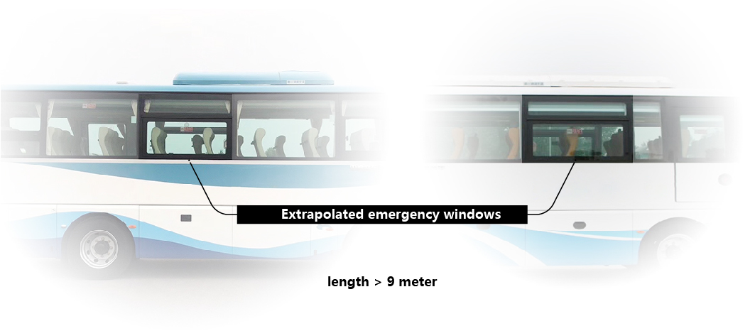Además, la norma JT/T 1094 ha introducido innovaciones en la salida de carrocería.La norma exige que se proporcionen salidas de emergencia en la pared trasera de los autobuses en funcionamiento, pero el parabrisas trasero de los autobuses en funcionamiento grandes está bloqueado por los reposacabezas de los asientos y la mayoría de ellos no pueden cumplir con los requisitos de tamaño para el diseño de ventanas de emergencia, que son Canales efectivos para una rápida evacuación y escape después de un accidente de vuelco.En respuesta a esto, la norma propone que 'los reposacabezas de la última fila de asientos de pasajeros deberán diseñarse para que se puedan retirar o revertir rápidamente u otros métodos para cumplir con los requisitos de paso de ventanas de emergencia'. No había ninguna disposición especial para las salidas de emergencia para autobuses de pasajeros.El propósito de presentar este requisito especial es aumentar el espacio para que los pasajeros escapen en situaciones de emergencia y aumentar la posibilidad de escape.