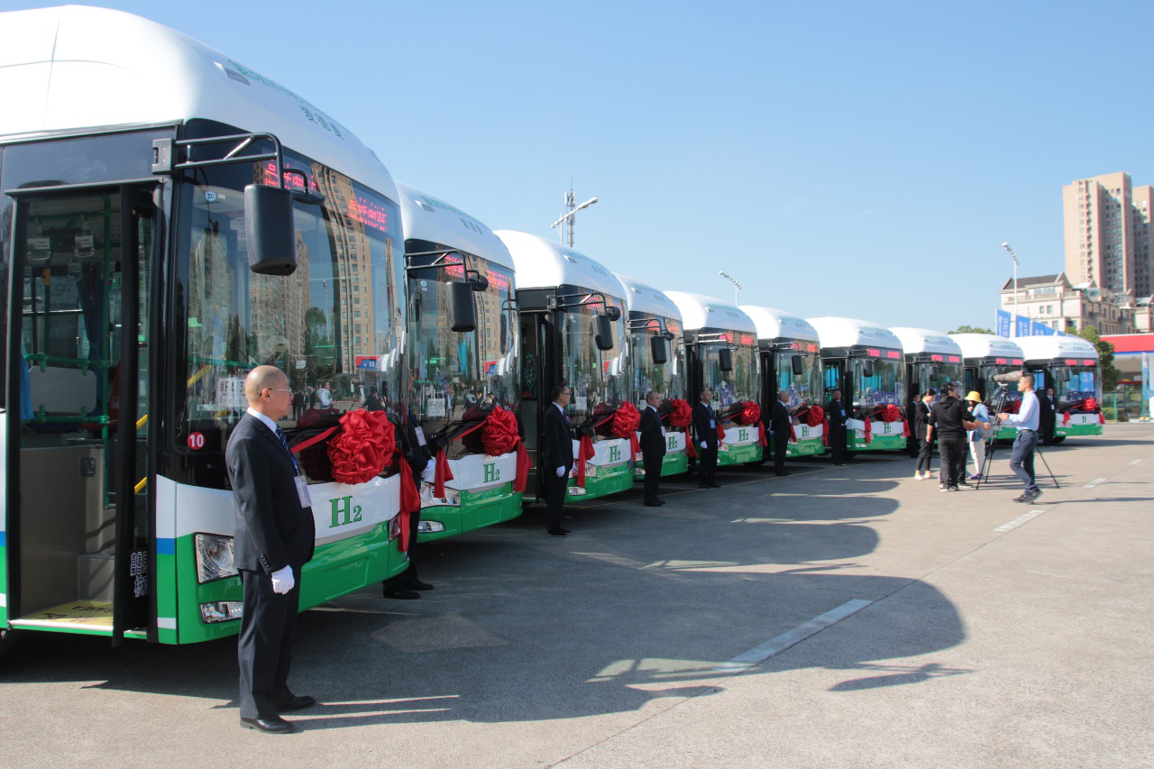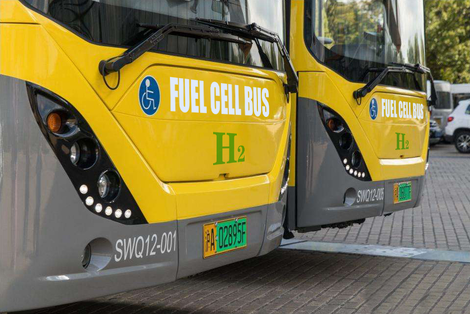 ![]() Autobús de pila de combustible H2 en funcionamiento, ZheJiang, China | ![]() Autobús de pila de combustible H2 en funcionamiento, Shanghai, China |